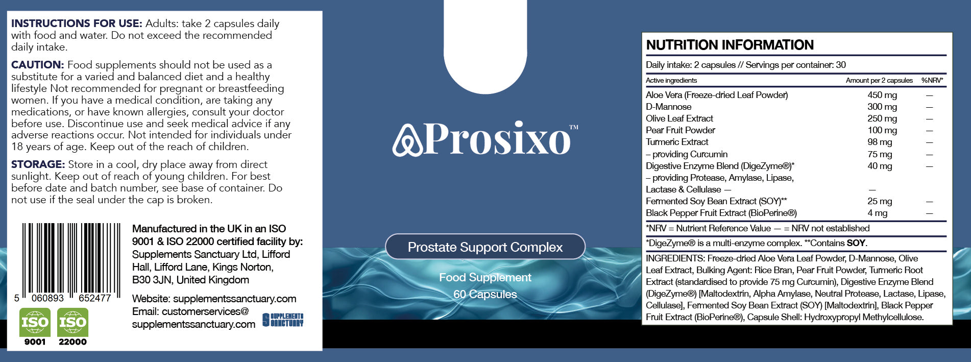 Prosixo™ – Prostate Support Complex – Aloe Vera, D-Mannose & Olive Leaf – 60 Capsules